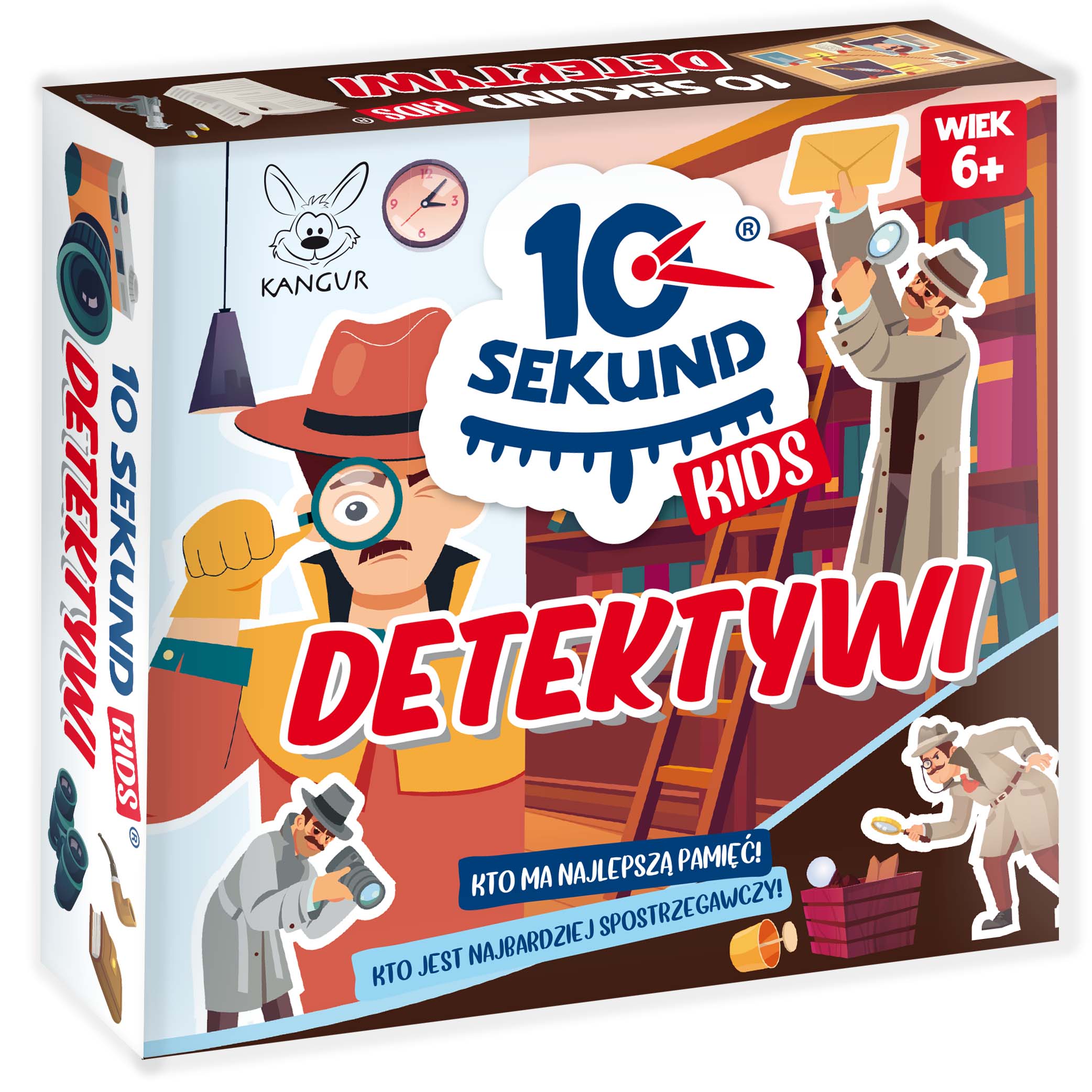 10 Sekund Kids : Detektywi. - Białystok : Kangur, 2025. - 1 gra ( 48 ilustrowanych kart z pytaniami, kostka do gry) ; w pudełku 14x18x5 cm + istrukcja