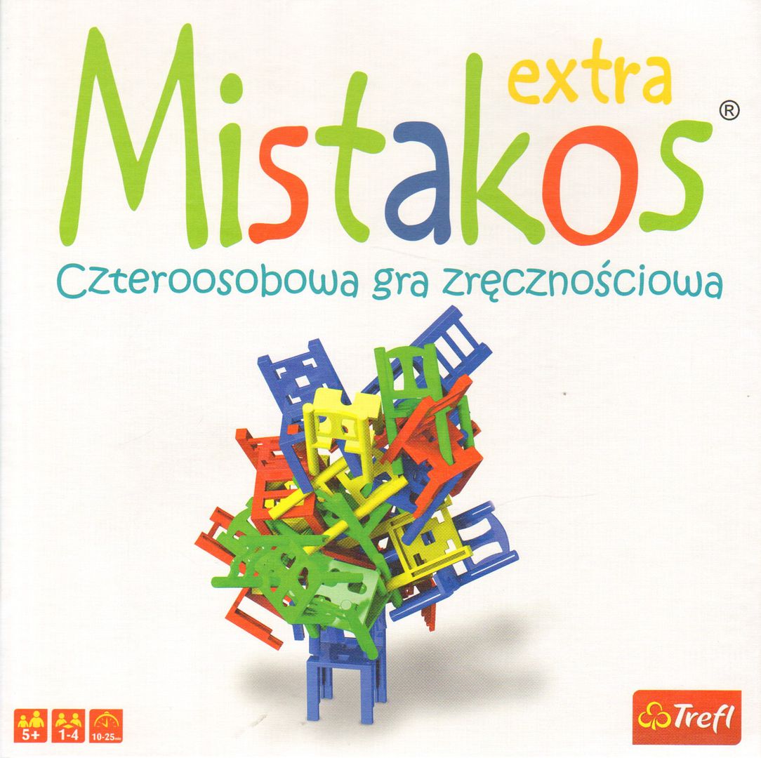 Gra „Mistakos” może przebiegać w dwóch wariantach: • Wariant 1 – Gracze jeszcze przed rozpoczęciem stawiania wieży z krzeseł, określają ilość rund do rozgrania np. 5. Zwycięża, ten, który na swoim koncie ma najmniej punktów karnych. Liczba punktów ujemnych odpowiada liczbie krzeseł, które spadły na stół w czasie ruchu danego gracza. • Wariant 2 – Wygrywa ten, kto pierwszy pozbędzie się wszystkich krzeseł. Pulę krzeseł należy podzielić po równo między graczy. Następnie każdy z graczy, jeden po drugim, dokłada krzesełka, tak by nie zniszczyć konstrukcji. Wszystkie krzesła, które spadną na stół, trafiają do puli gracza, który aktualnie wykonywał ruch. Niebanalna forma i proste zasady to główna zaleta gry rodzinnej „Mistakos”. Świetnie sprawdzi się jako zabawa łącząca graczy w różnym wieku. Gra z pewnością wyzwala wiele emocji, radości i daje niemałą satysfakcję dla zwycięzcy. (Noty wydawcy).