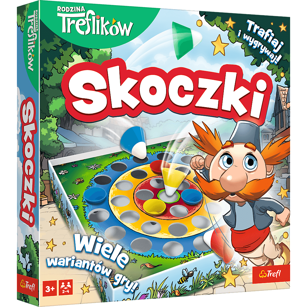 Skoczki : Rodzina Treflików / [zespół projektowy: Agnieszka Walczak, Marta Cebera, Bartosz Odorowicz, Mariusz Majchrowski ; opracowanie graficzne: Przemysław Walczak, Monika Duc, Kamila Mrożek]. - Gdynia : Trefl, [2025]. - 1 pudełko zawartość: 12 skoczków, 4 wyrzutnie, 4 drzewka, 1 plansza, ; 26x26x4 cm ; instrukcja (2 strony : ilustracje kolorowe, 21x15 cm).