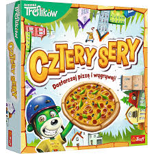 Cztery sery / autor gry: Michał Szewczyk ; opracowanie graficzne i ilustracje: Michał Ambrzykowski. - Gdynia : Wydawnictwo Trefl, [2023]. - 1 pudełko (plansza, 4 pionki, 20 żetonów pizzy, 20 kart adresów, 36 kart akcji, kostka) : karton, kolor, plastik ; 26x26x6 cm + instrukcja (2 strony : ilustracje kolorowe ; 25 cm).